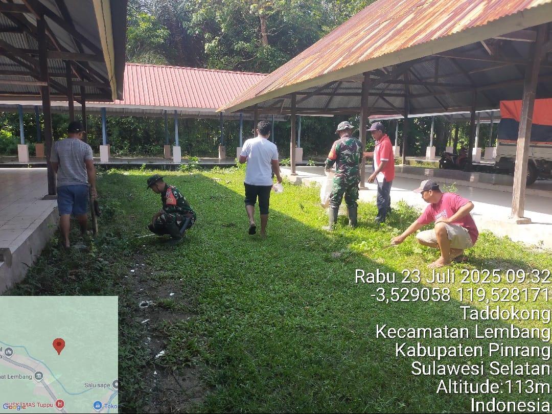 Pinrang_ Peduli terhadap kebersihan Lingkungan, Babinsa Koramil-07/Lembang Kodim 1404/Pinrang beserta warga melaksanakan aksi pembersihan pasar Tuppu di Kelurahan Tadokkong Kecamatan Lembang Kabupaten Pinrang, Rabu (23/07/2025).