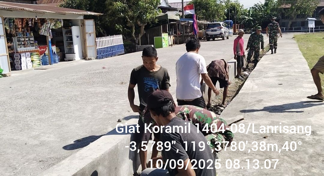 Pinrang_ Sebagai bentuk kepedulian terhadap kebersihan lingkungan, Babinsa jajaran Koramil-08/Lanrisang Kodim 1404/Pinrang bersama warga melaksanakan kerja bakti pembersihan saluran air di Dusun Coka Desa Barangpalie Kecamatan Lanrisang Kabupaten Pinrang, Rabu (10/09/2025).