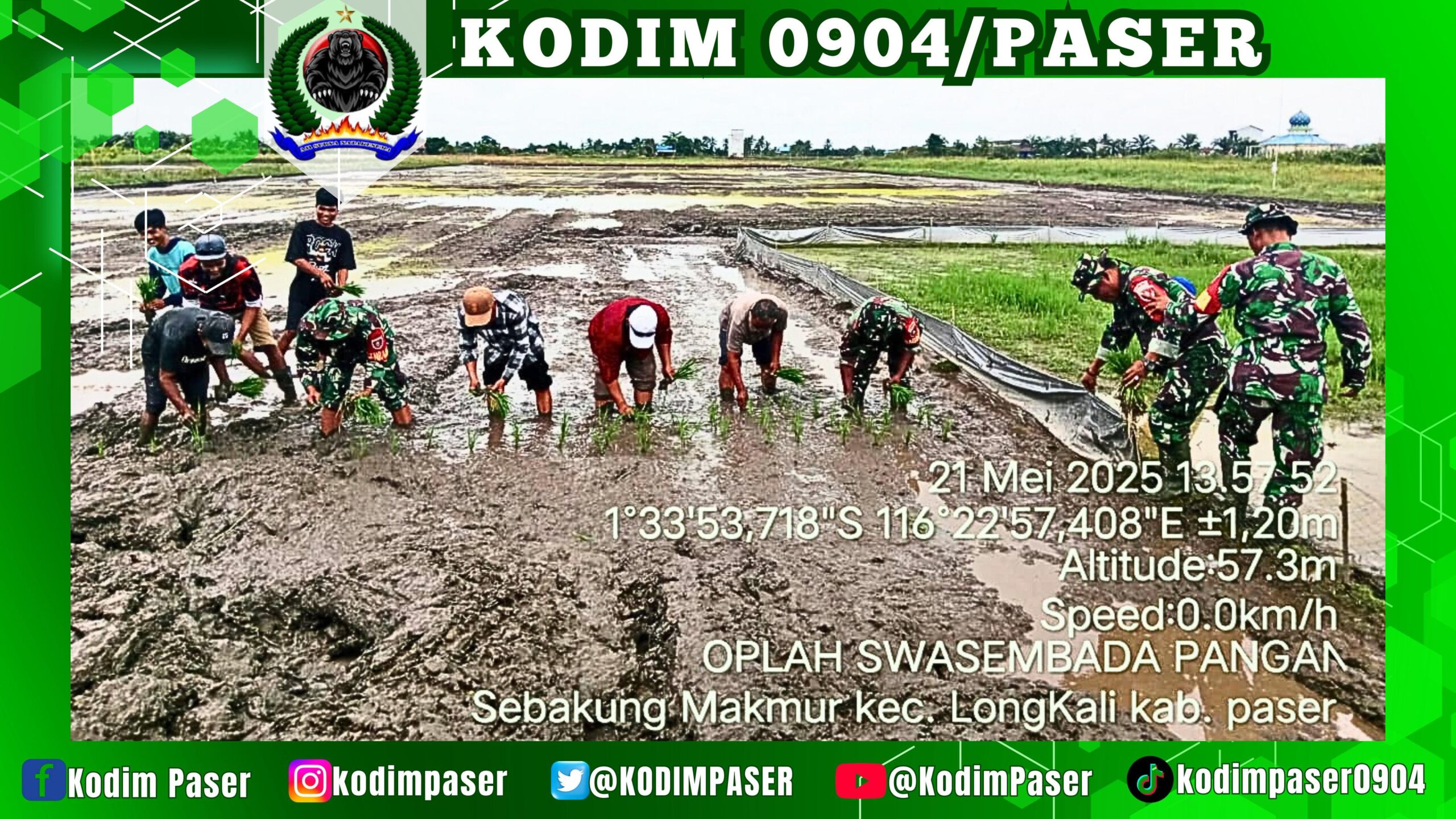 Kodim 0904/Psr, Korem 091/ASN, Kodam VI/Mlw – Danramil 0904-03/Longkali, Letttu Inf. Tabri beserta seluruh Anggota ikut terlibat langsung dalam kegiatan penanaman padi bersama kelompok tani Brigade Berkah Bersama di Desa Sebakung Makmur, Kec. Longkali, Kab. Paser. Rabu (21/05/2025)