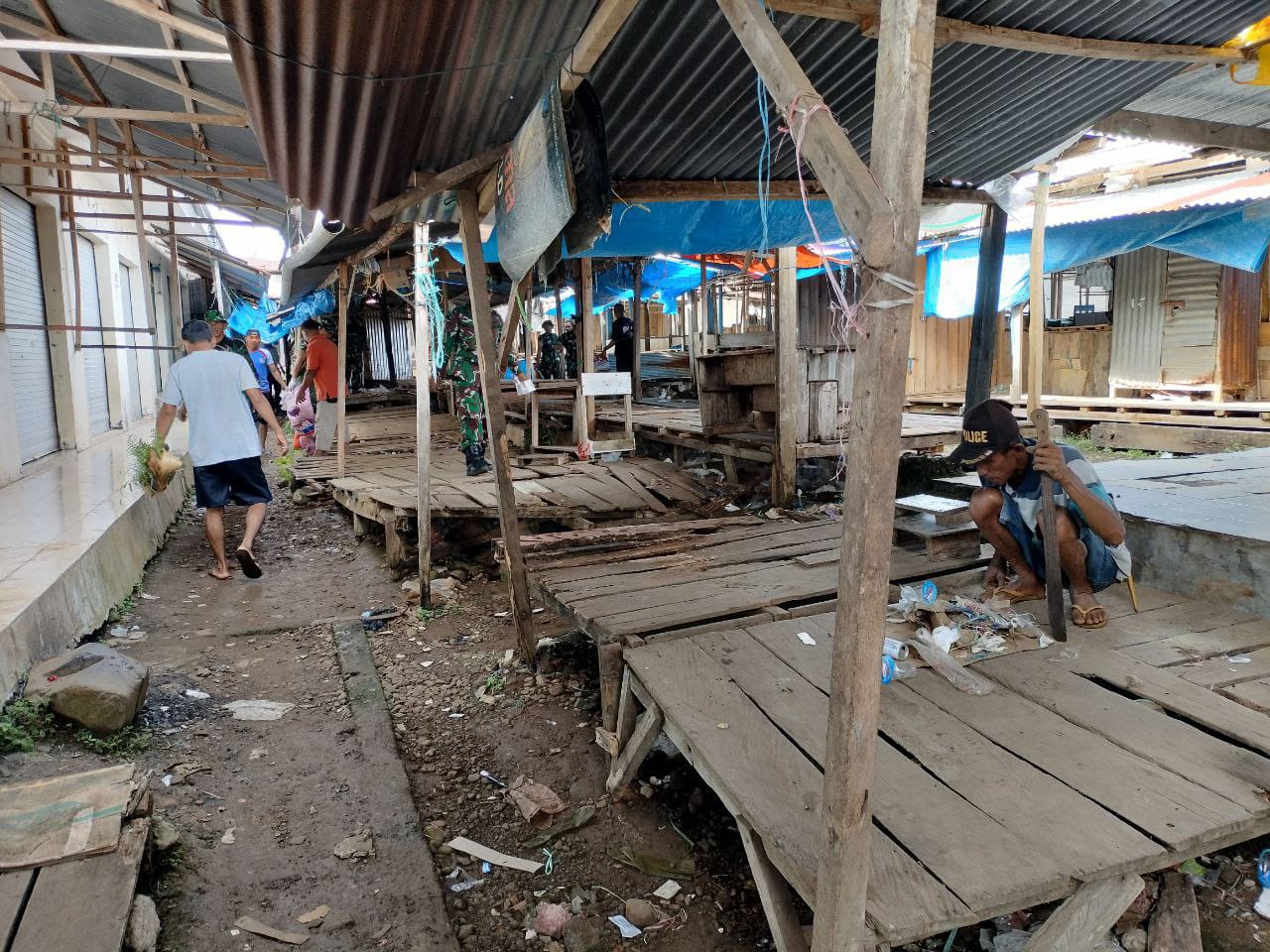 SINJAI. Personel Koramil 1424-05/Sinjai Selatan yang dipimpin Danramil, Lettu Inf Alimuddin bersama Sekretaris Desa Saotengah, Kepala Dusun, serta masyarakat setempat melaksanakan kegiatan kerja bakti di Pasar Tradisional Lappae, Desa Saotengah, Kecamatan Tellulimpoe. Kegiatan ini difokuskan pada pembersihan sampah, rumput liar, serta material lain yang menumpuk di area pasar.(26/08/2025)
