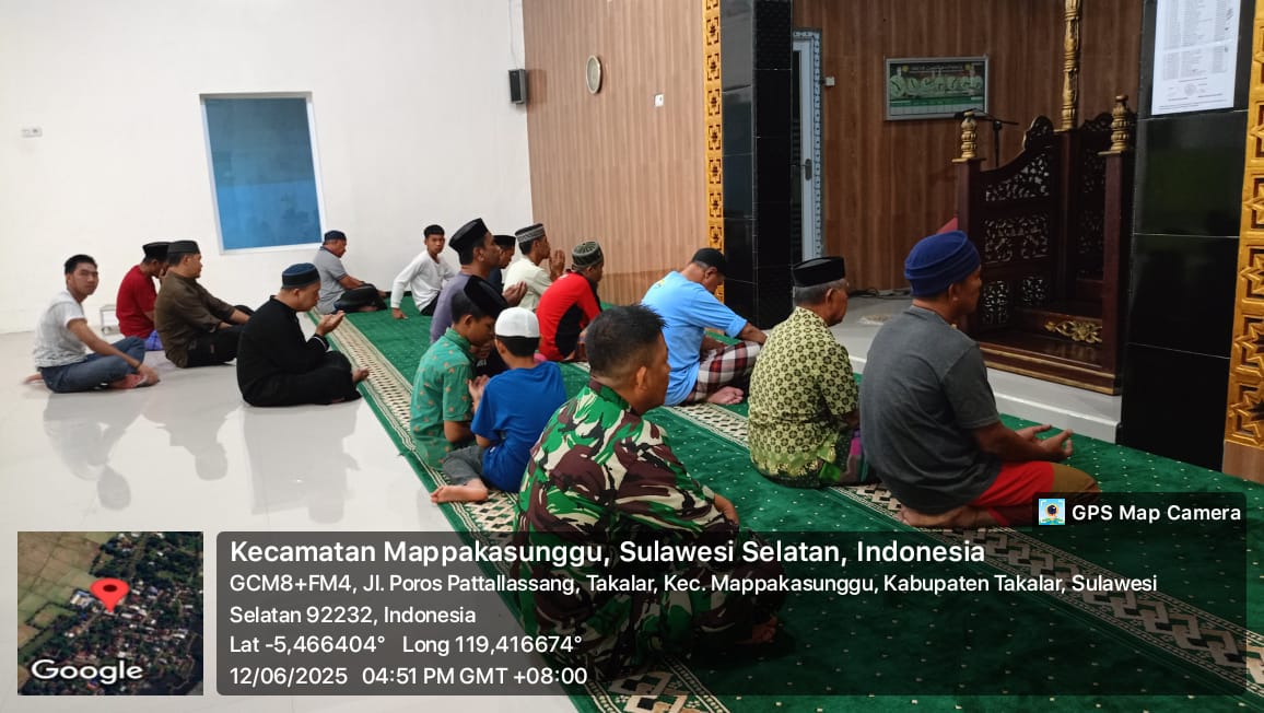 TAKALAR — Tingkatkan keimanan dan ketaqwaan kepada Allah SWT, Personel Koramil 1426-06/Mapsu, Kodim 1426/Takalar, melaksanakan kegiatan safari Sholat Subuh berjamaah dengan menggilir tiga Masjid wilayah binaan kali ini giliran Masjid Nurul Ibrahim, Masjid Nurul Ihsan dan Masjid Nurul Muhajirin Kecamatan Mapsu dan Sanrobone Kabupaten Takalar. Kamis, (12/06/2025)