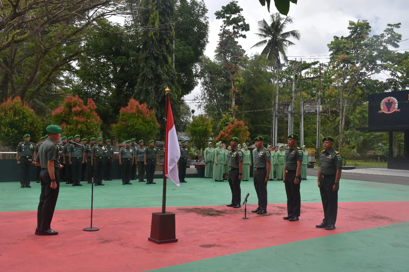 Sorong-Papua Barat Daya, 1 Oktober 2025 – Korem 181/Praja Vira Tama (PVT) menggelar kegiatan Laporan Korps Kenaikan Pangkat Perwira serta Pelantikan Kenaikan Pangkat Bintara dan Tamtama periode 1 Oktober 2025, yang berlangsung di Lapangan SKB Korem 181/PVT. Acara ini dipimpin langsung oleh Komandan Korem 181/PVT, Brigjen TNI Slamet Riadi, S.I.P., dengan dihadiri Kasrem, para Kasi Kasrem, para Kepala Balak Aju, Ketua Persit Kartika Chandra Kirana Koorcab Rem 181 PD XVIII/Kasuari beserta pengurus, serta seluruh prajurit dan PNS jajaran Korem 181/PVT.