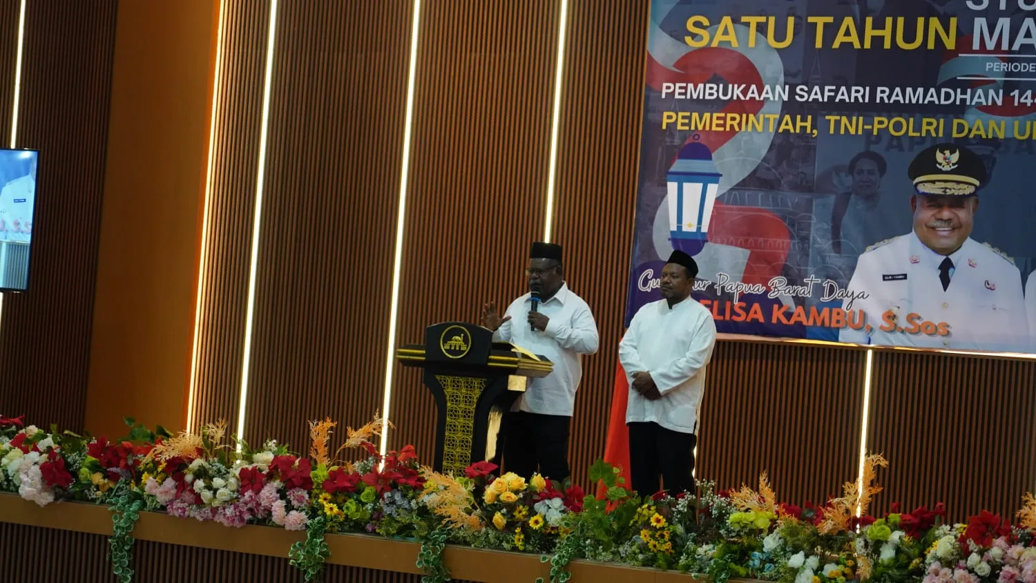 Sorong – Papua Barat Daya Danrem 181/PVT Brigjen TNI Slamet Riadi, S.I.P., menghadiri kegiatan Mensyukuri Satu Tahun Kepemimpinan Gubernur dan Wakil Gubernur Provinsi Papua Barat Daya yang dirangkaikan dengan Buka Puasa Bersama dan Pencanangan Safari Ramadhan 1447 H Pemerintah Provinsi Papua Barat Daya bersama TNI, Polri, dan masyarakat. Jumat 20/02/2026.