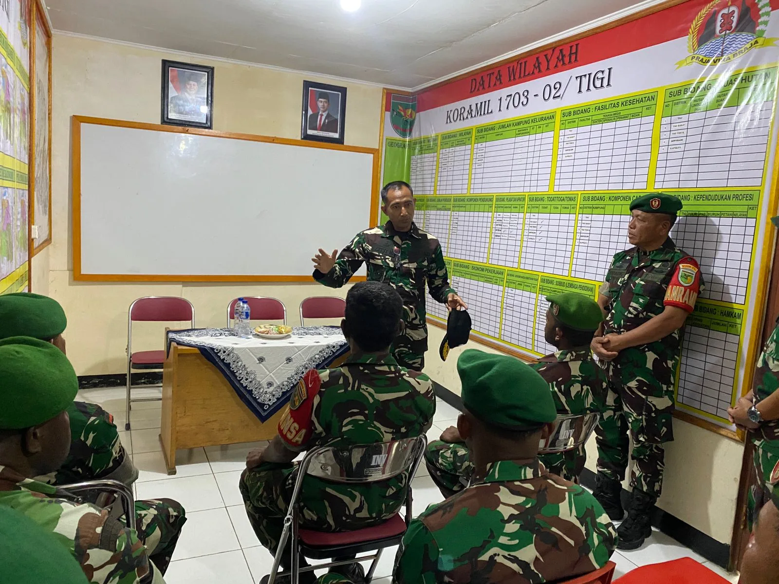 Tigi –Komandan Korem (Danrem) 173/PVB Brigjen TNI I Ketut Mertha Gunarda yang didampingi Dandim 1703/Deiyai Letkol Inf Ary Iswoyo, S,Hub, Int Timor berkunjung ke Koramil 1703-02/Tigi, Jumat (09/01/2025).