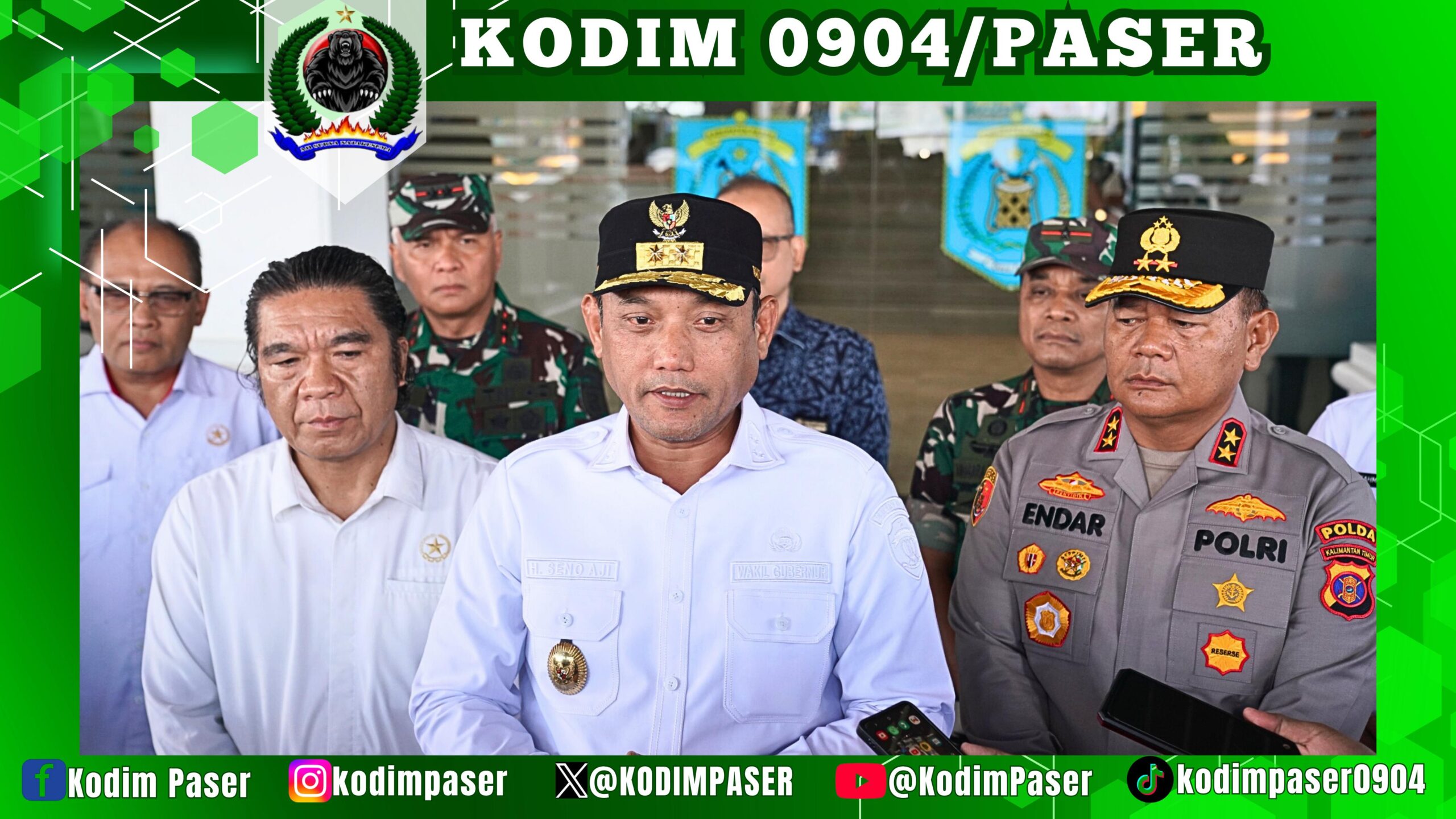 Turut hadir pada kegiatan diskusi ini yaitu Wakil Gubernur Kaltim Ir. H. Seno Aji, M.Si., Kapolda Kaltim Irjen Pol Endhar Priantoro, S.H., S.I.K., C.F.E., M.H., dan Danrem 091/ASN Brigjen TNI Anggara Sitompul, S.I.P, M.Si.. Kedatangan rombongan juga disambut oleh Bupati Paser beserta Forkopimda Kab. Paser dan Kapolres Paser.