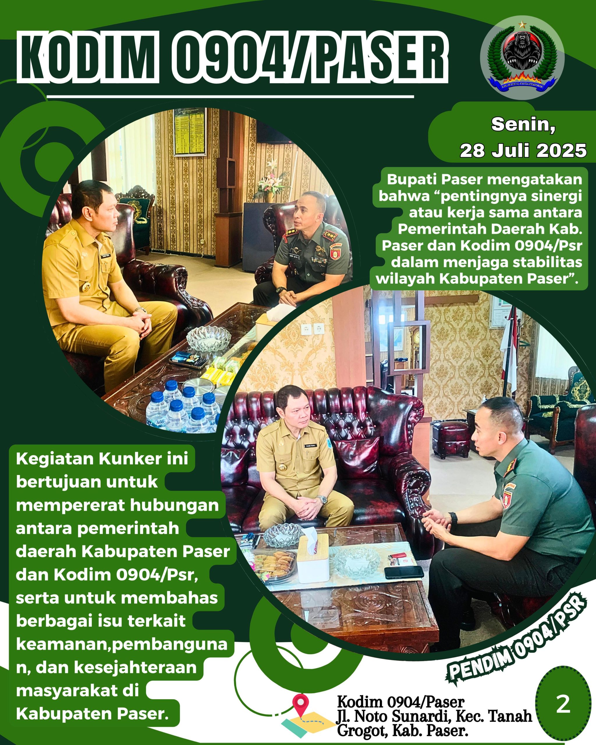 Bupati Paser mengatakan bahwa “pentingnya sinergi atau kerja sama antara Pemerintah Daerah Kab. Paser dan Kodim 0904/Psr dalam menjaga stabilitas wilayah Kabupaten Paser”.