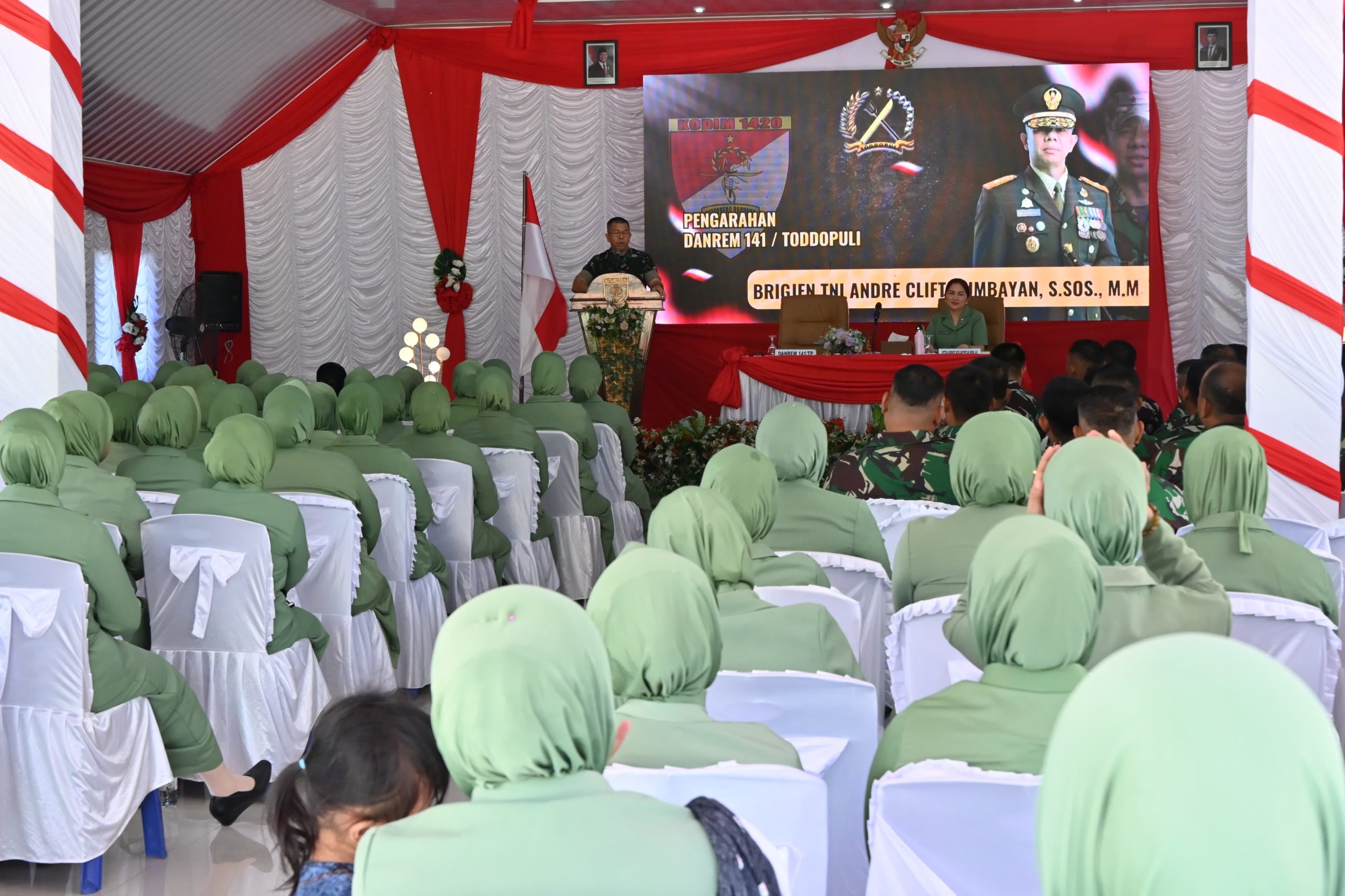 Suasana kunjungan berlangsung hangat dan penuh keakraban, menjadi ajang silaturahmi serta mempererat kebersamaan antara pimpinan dengan prajurit, PNS, dan Persit di jajaran Korem 141/Tp.(Penrem)