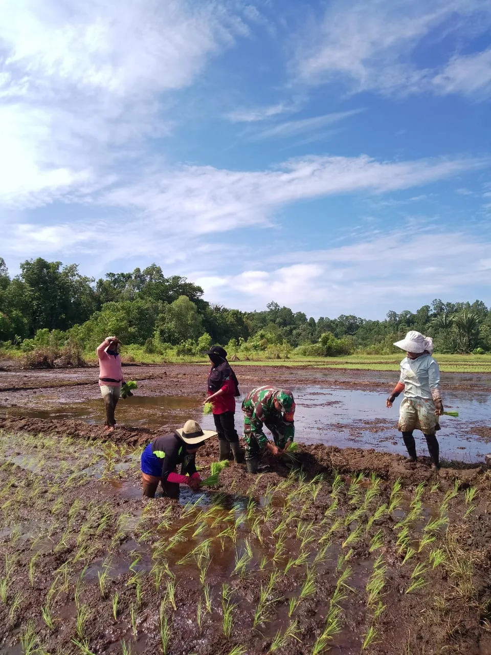 Sebagai bagian dari pendampingan ketahanan pangan, Babinsa secara konsisten membantu para petani di wilayah binaannya, mulai dari persiapan hingga pemeliharaan tanaman padi. Pendampingan ini bertujuan untuk mempercepat proses penanaman padi dan meningkatkan hasil pertanian.
