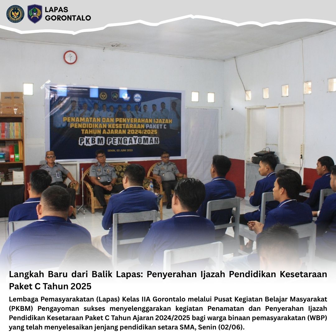 Kegiatan ini merupakan bagian dari upaya Lapas Gorontalo dalam mendukung program rehabilitasi dan reintegrasi sosial melalui pendidikan. Melalui program Pendidikan Kesetaraan Paket C, para warga binaan diberikan kesempatan untuk tetap mengembangkan potensi diri dan mempersiapkan masa depan yang lebih baik setelah menjalani masa pidana.