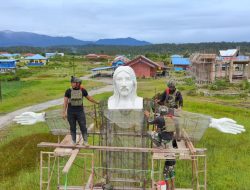 Pekerjaan yang dilakukan oleh prajurit Satgas Yonif 733/Masariku bersama masyarakat setempat ini berlangsung penuh semangat dan kekompakan. Setiap bagian dipasang dengan teliti agar struktur patung berdiri kokoh dan aman.