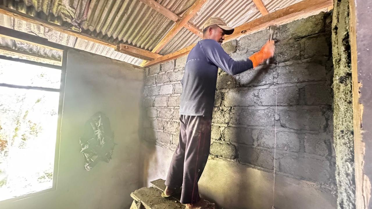 Pengerjaan plester dinding dalam TMMD biasanya dilakukan oleh anggota Satgas TMMD bersama warga setempat dengan semangat gotong royong