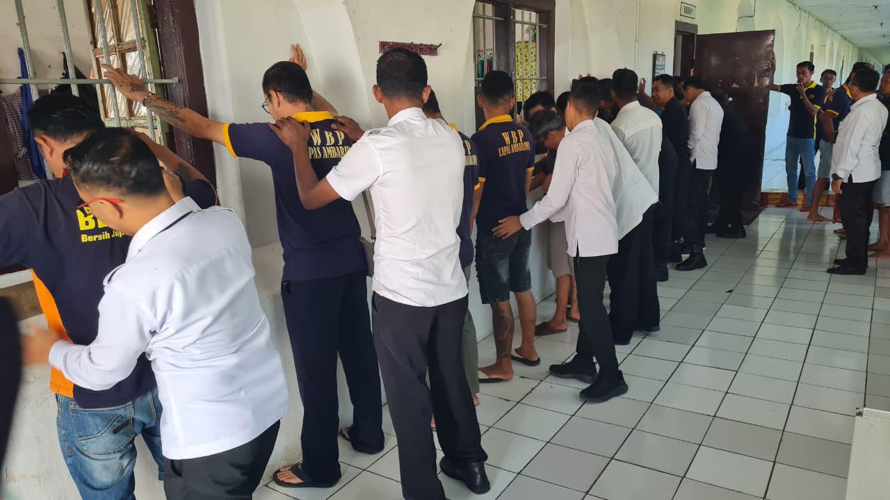 Selanjutnya kegiatan dilanjutkan dengan penggeledahan kamar dan badan terhadap semua warga binaan blok I dan blok II yang terdapat 9 kamar warga binaan yang dipilih secara acak setiap kamar blok hunian dan 60 pegawai lapas ambarawa dengan hasil penggeledahan kamar dan badan nihil atau zero.