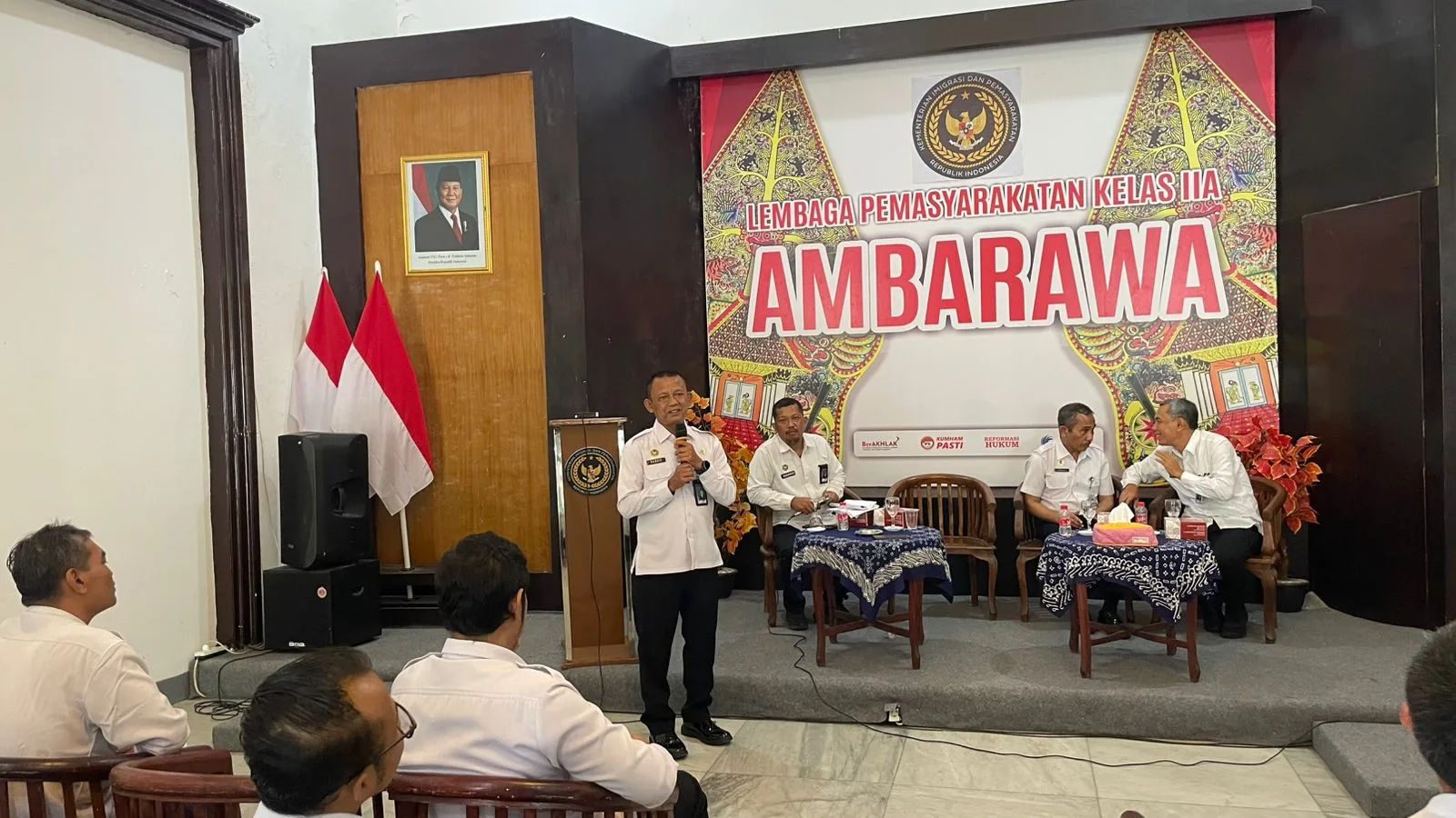 Kegiatan ini dihadiri oleh Drs. Nadzif Ulfa selaku Pembina Utama Muda Pembimbing Kemasyarakatan Ahli Madya yang mewakili Kepala Kantor Wilayah Direktorat Jenderal Pemasyarakatan Jawa Tengah, Mustafa Beleng selaku Kepala Kantor Wilayah Kementerian HAM Jawa Tengah, serta Kepala Lapas Kelas IIA Ambarawa, Subakdo Wulandoro dan diikuti oleh seluruh jajaran pegawai Lapas Kelas IIA Ambarawa.