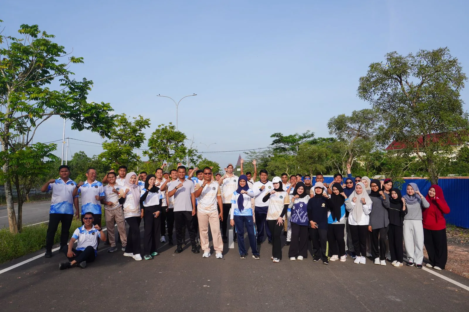 Kegiatan jalan santai dilakukan bersama jajaran petugas Lapas Banjarbaru serta peserta magang dari Kementerian Ketenagakerjaan (Kemnaker) dengan tujuan mempererat hubungan kerja sekaligus menjaga kebugaran fisik.
