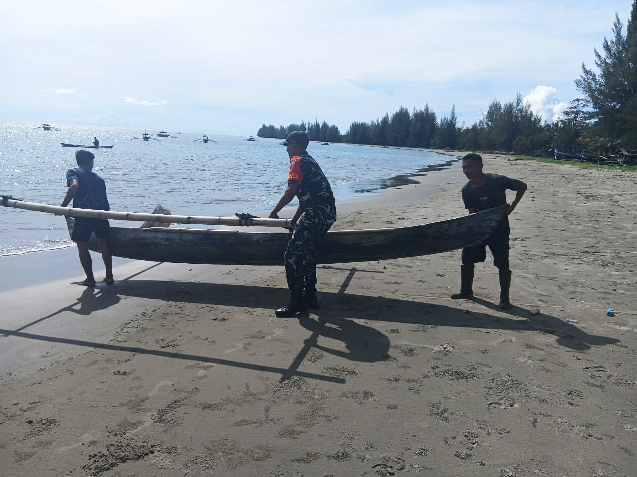 Sembari membantu menurunkan perahu ke laut, Babinsa dan nelayan membahas tentang kurangnya hasil tangkapan ikan sebelumnya dan tidak lupa menghimbau agar memperhatikan cuaca yang tidak menentu serta kroscek kondisi perahu sebagai langkah antisipasi cegah dini guna menghindari kecelakaan ketika berlayar.