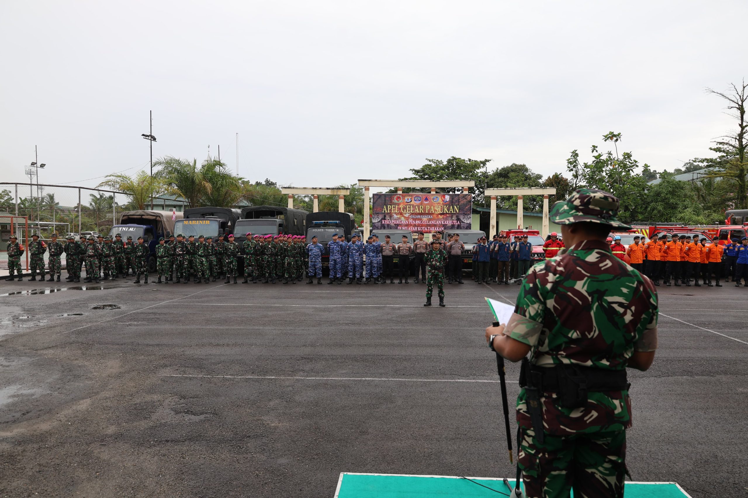 Tarakan – Kodim 0907/ menggelar apel gelar pasukan dalam rangka kesiapsiagaan menghadapi potensi kebakaran hutan dan lahan (karhutla), Selasa, (12/8/2025).