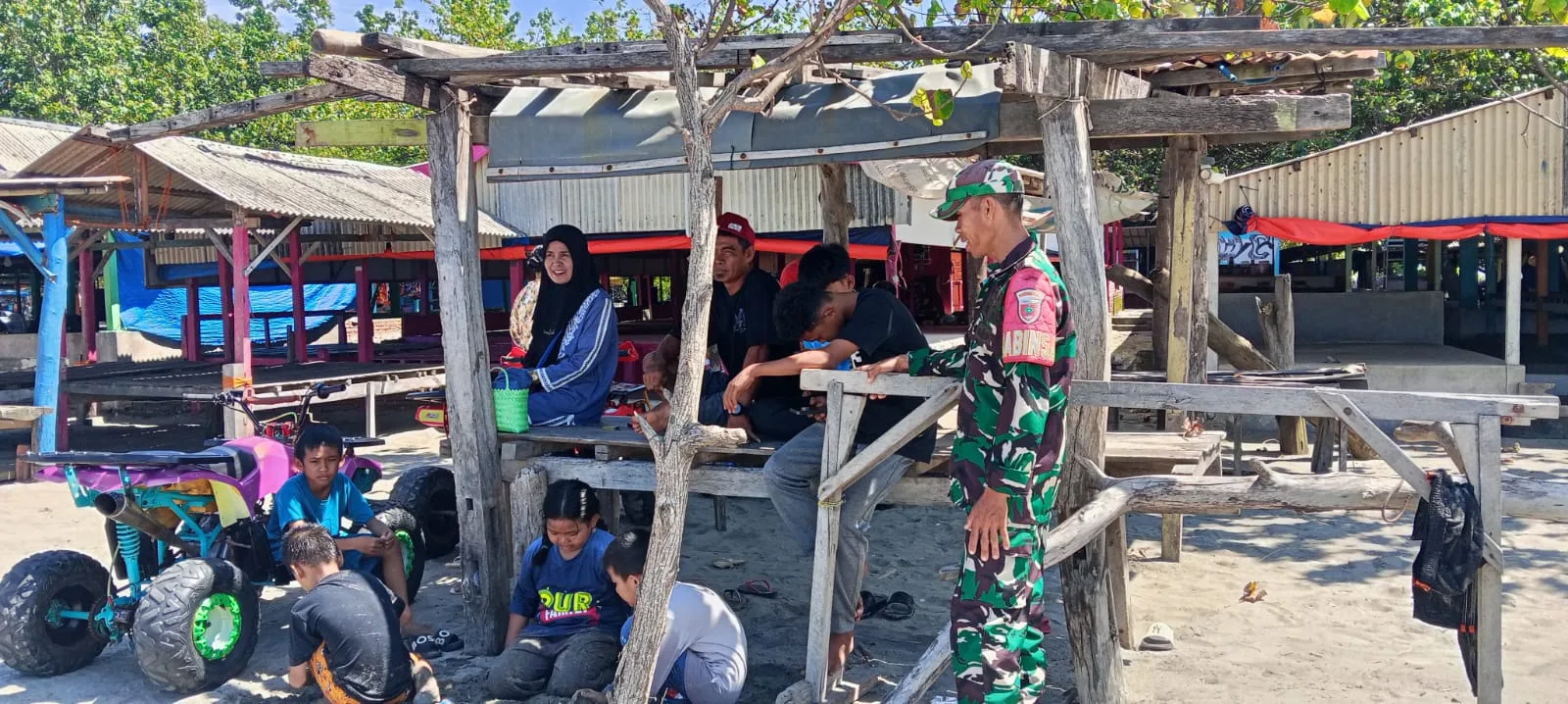 Libur Nataru, Babinsa dan Bhabinkamtibmas Laksanakan Pengamanan Pantai di Kabupaten Pinrang