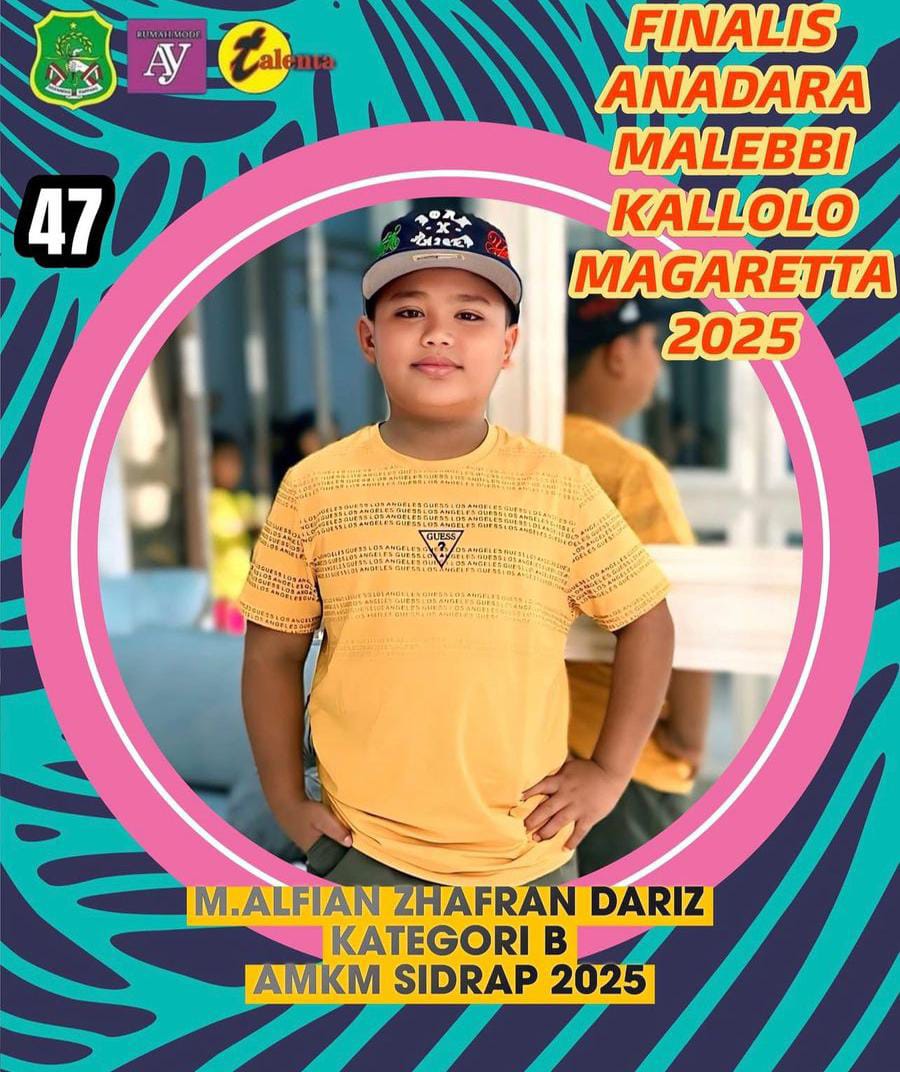 Salah satu finalis berbakat, M. ALFIAN ZHAFRAN DARIZ, yang berkompetisi di Kategori B, mewakili AMKM Sidrap 2025 dengan Kode 47, mengajak seluruh pendukungnya untuk memberikan dukungan penuh agar dapat meraih gelar favorit!