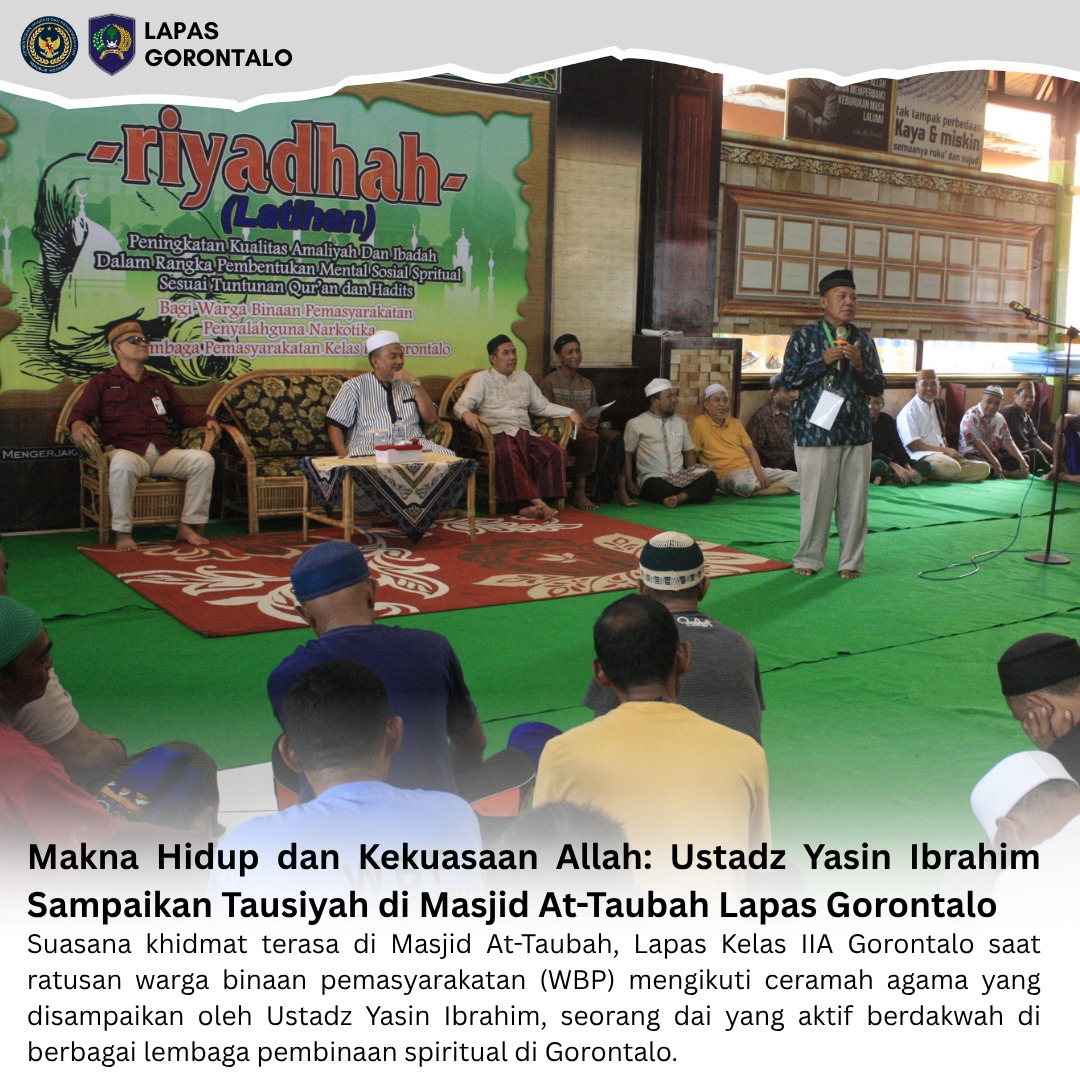 Dengan komitmen pembinaan yang kuat, Lapas Gorontalo terus membuka ruang bagi setiap warga binaan untuk bertumbuh dalam nilai-nilai keimanan dan keinsafan, menuju kehidupan yang lebih baik selepas masa pidana.