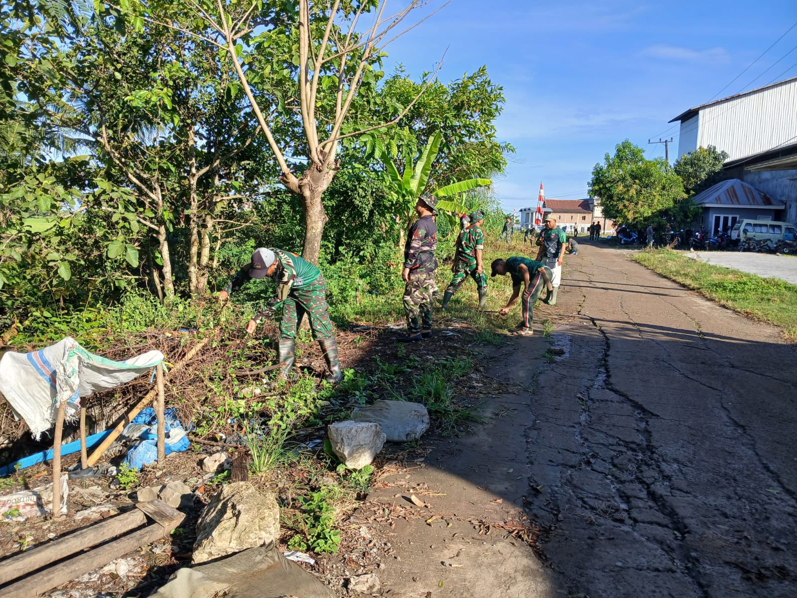 Kegiatan ini dilakukan sebagai bentuk kepedulian terhadap kebersihan lingkungan sekaligus mempererat hubungan antara TNI dan masyarakat. Puluhan personil Koramil bersama warga turun langsung membersihkan semak-semak dan sampah di sepanjang bahu jalan desa yang selama ini mulai tertutup oleh rerumputan liar.