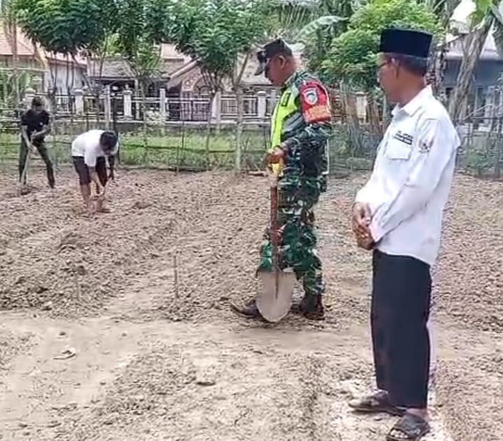 Nagan Raya– Guna memanfaatkan lahan dipekarangan rumah warga Serka Roni Syaf Candra Babinsa Koramil 02/Seunagan Kodim 0116/Nara Bantu Warga membuat bedengan untuk ditanami sayuran di Desa Pante Latong, Kecamatan Seunagan, Kabupaten Nagan Raya,Selasa (27/05/2025).