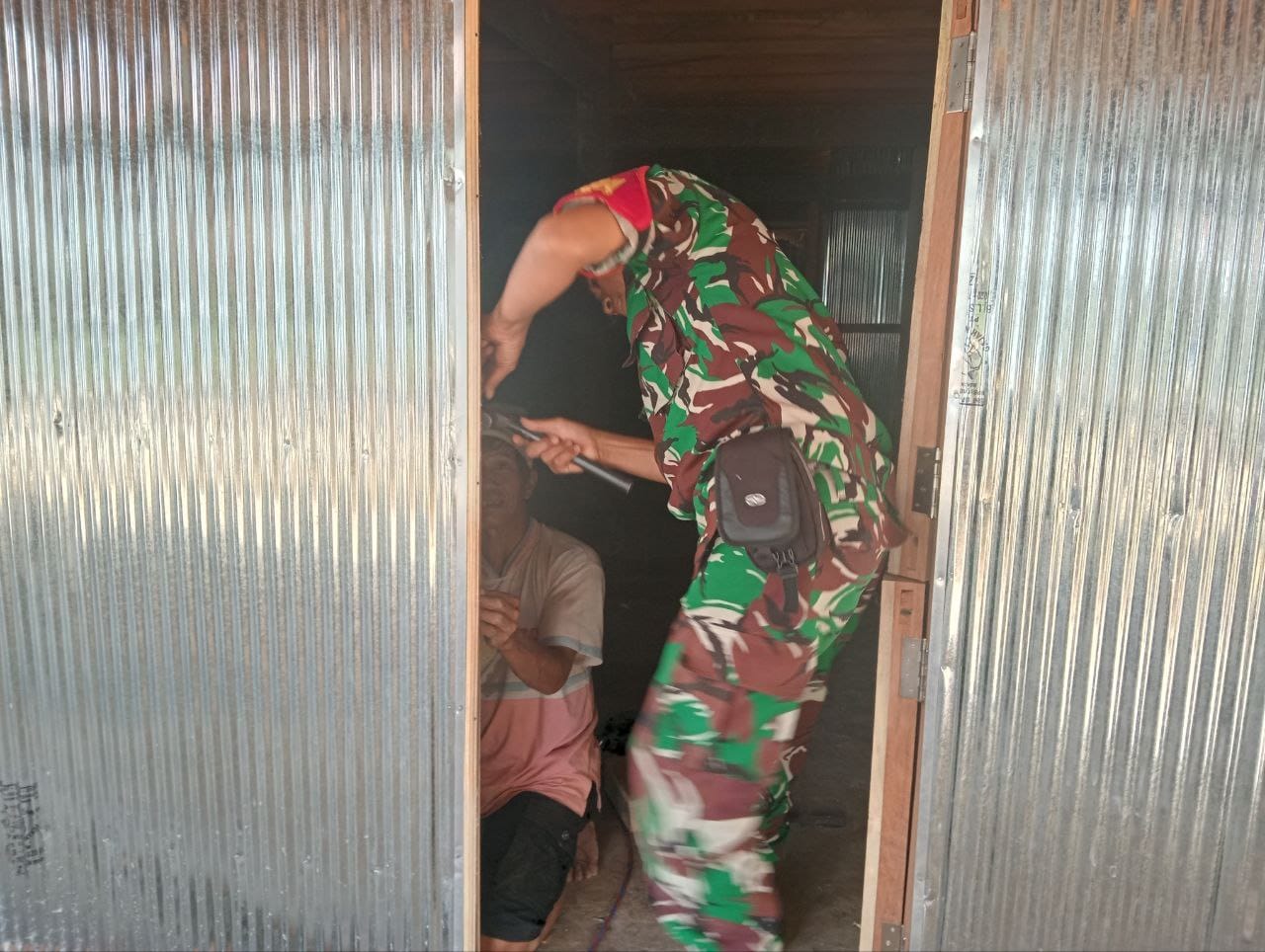 KODIM 1404/PAREPARE – Selalu aktif dalam membantu kesulitan masyarakat di wilayah binaan merupakan salah satu tugas Bintara Pembina Desa (Babinsa), seperti yang dilakukan Babinsa Koramil 1405-08/Tanete Riaja Sertu Asri, membantu merenovasi rumah Bapak Syamsudin warga Desa Bacu Bacu Kecamatan Pujananting Kabupaten Barru. Senin (11/08/2025)
