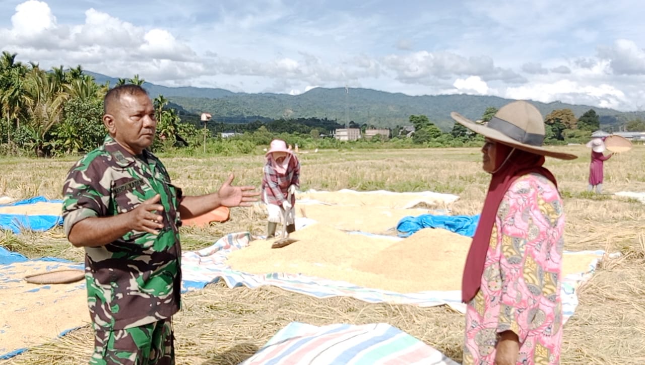 Babinsa Serma Yaden menambahakan bahwa sosialisasi dan pendampingan pasca panen merupakan bagian dari strategi TNI dalam memperkuat ketahanan pangan berkelanjutan.