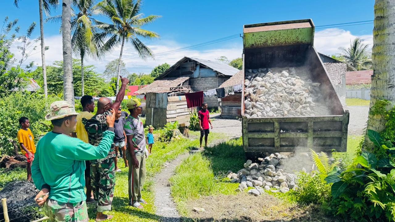 Guna menunjang Kelancaran selama pembangunan di setiap sasaran, Satgas TMMD 124 Kodim 1502/Masohi terus menyiapkan material berupa pasir, dan batu yang nantinya akan di gunakan oleh satgas TMMD. Senin (12/05/2025).