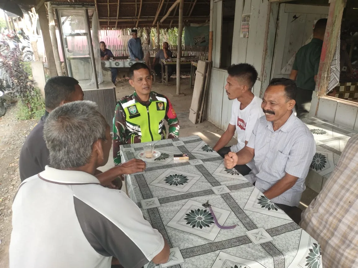 Dalam suasana santai dan penuh keakraban, Serda M. Yusuf berbaur dengan warga sambil berbincang ringan agar komunikasi tetap terjalin secara humanis, humoris, dan harmonis.
