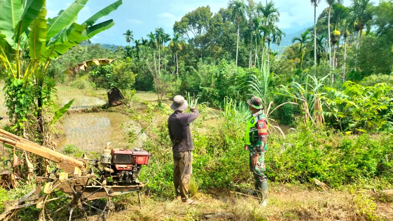 Nagan Raya – Dukung upaya pemerintah mewujudkan swasembada pangan, Babinsa Posramil Beutong Ateuh Banggalang Kodim 0116/Nara Serda Zulfadli melaksanakan Kegiatan Komsos dengan Petani Padi dalam rangka pembinaan pemberdayaan petani dalam meningkatkan produksi padi bertempat di sawah bapak Syarifuddin di desa Kuta Teungoh kecamatan Beutong Ateuh Banggalang Kabupaten Nagan Raya, Sabtu (10/01/2026)