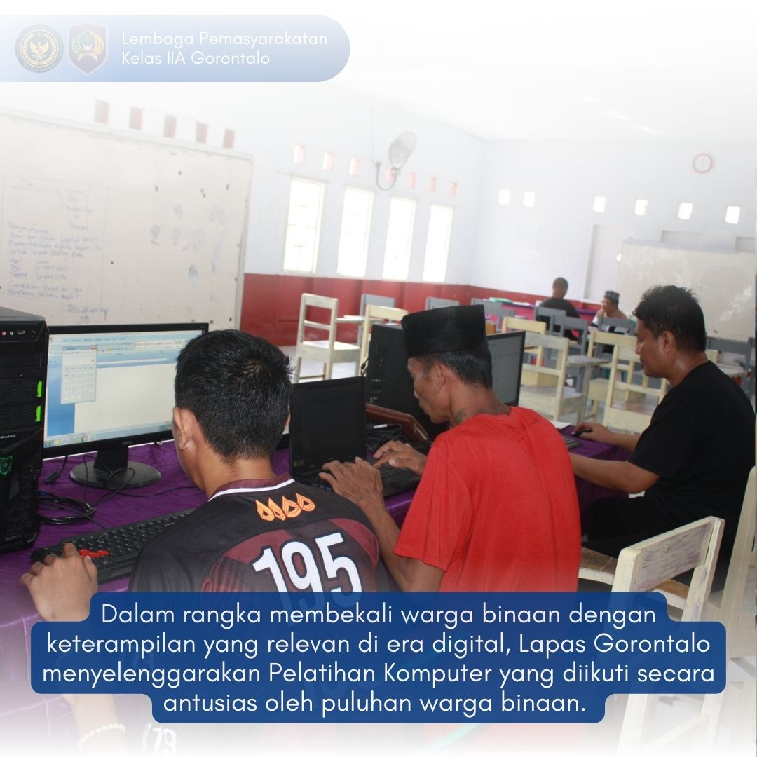 Gorontalo – INFO_PAS –Senin (19/05) Dalam rangka membekali warga binaan dengan keterampilan yang relevan di era digital, Lembaga Pemasyarakatan Kelas IIA Gorontalo menyelenggarakan Pelatihan Komputer yang diikuti secara antusias oleh puluhan warga binaan. Kegiatan ini merupakan bagian dari program pembinaan kemandirian yang bertujuan untuk menyiapkan warga binaan agar lebih siap menghadapi dunia kerja setelah bebas nanti.