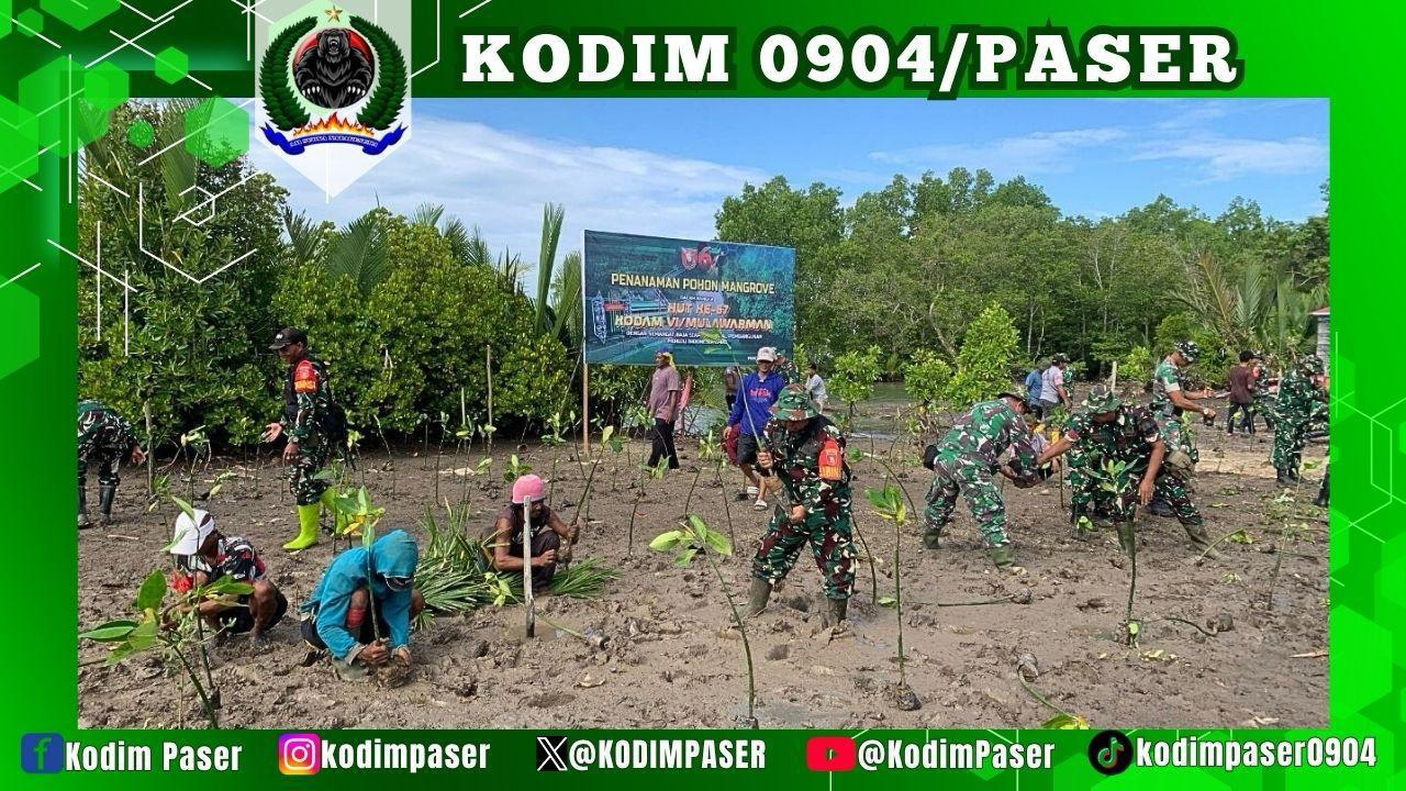Dandim 0904/Psr Letkol Inf Rommy Aditya Nanda Erlambang Eretan Situlembang Darmawi, S.E., M.I.P, sebelum pelaksanaan menyampaikan kegiatan ini merupakan rangkaian Hari Ulang Tahun ke-67 Kodam VI/Mulawarman, kegiatan ini mencerminkan semangat dan komitmen dalam mendukung pembangunan nasional secara nyata serta penanaman mangrove ini untuk menjaga tanah / garis pantai dari abrasi atau erosi serta menjaga ekosistem pesisir.