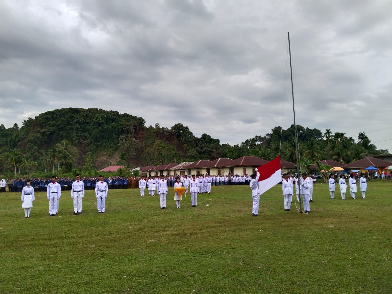 Kegiatan upacara pengibaran bendera merah putih dlm rangka memperingati Proklamasi Kemerdekaan Republik Indonesia Tahun 2025 berjalan aman, tertin dan lancar.