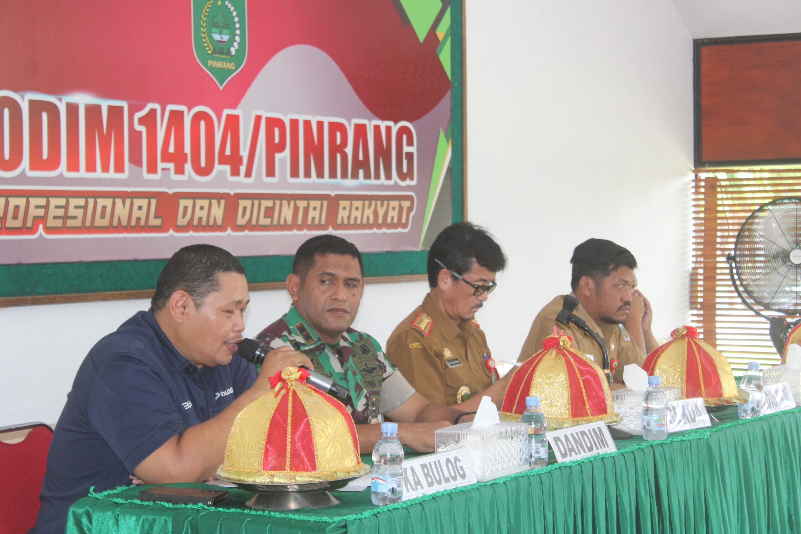 Pinrang_ Dandim 1404/Pinrang Letkol Inf Abdullah Mahua, S.H.I, M.M., mengundang Bulog, Pemda serta pihak-pihak terkait guna optimalisasi serapan gabah (Sergab) dan beras di wilayah Kabupaten Pinrang, Rabu (09/04/2025).