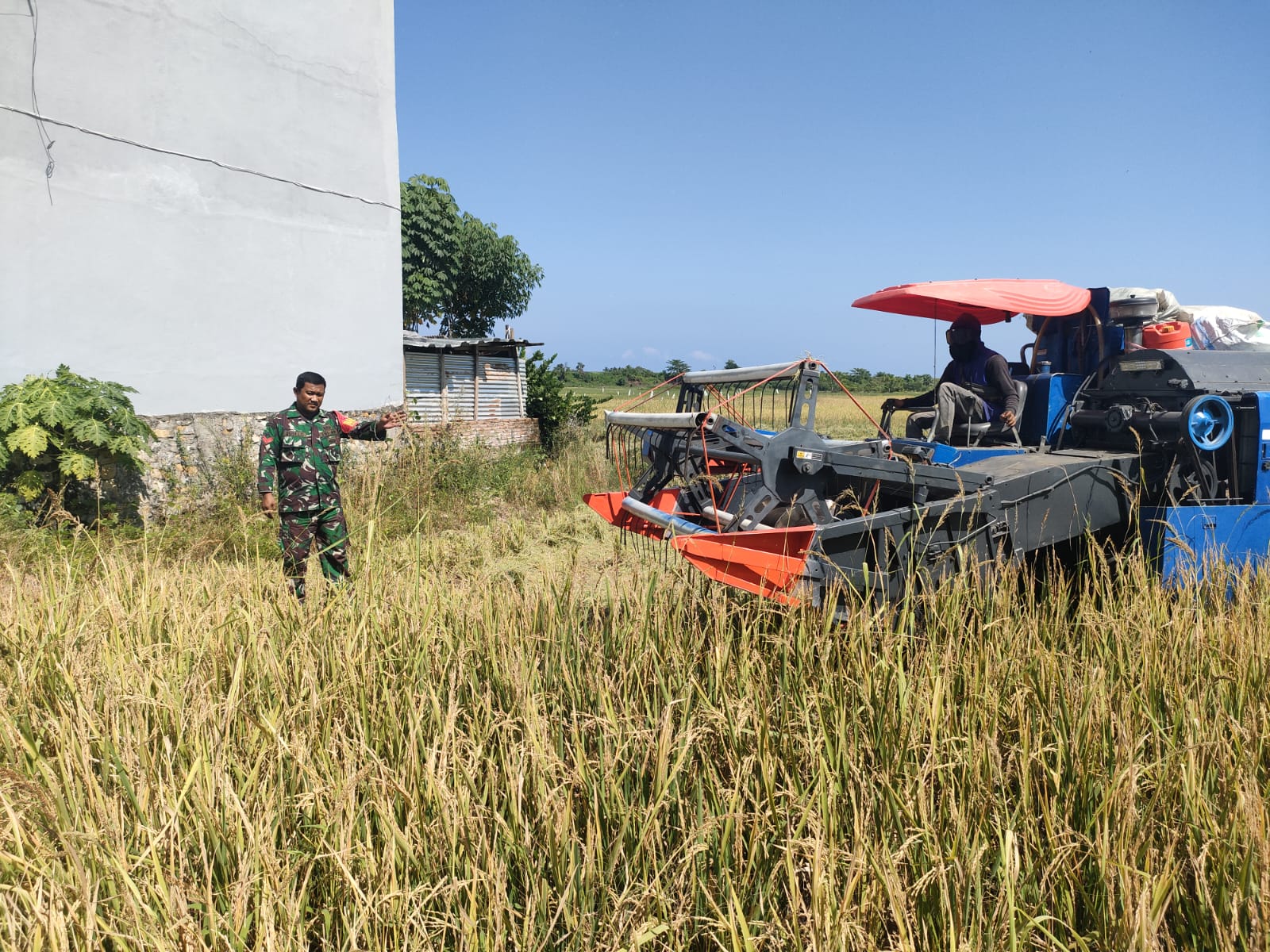 KODIM 1405/PAREPARE – Dalam upaya mendukung ketahanan pangan di wilayahnya, Babinsa Koramil 1405-06/Barru, Koptu Rusli melaksanakan pendampingan panen padi milik Bapak Haris anggota Kelompok Tani (Poktan) Makkalitutue berlokasi di Dusun Panrenge, Desa Siawung, Kecamatan Barru, Kabupaten Barru. Selasa (22/07/2025)