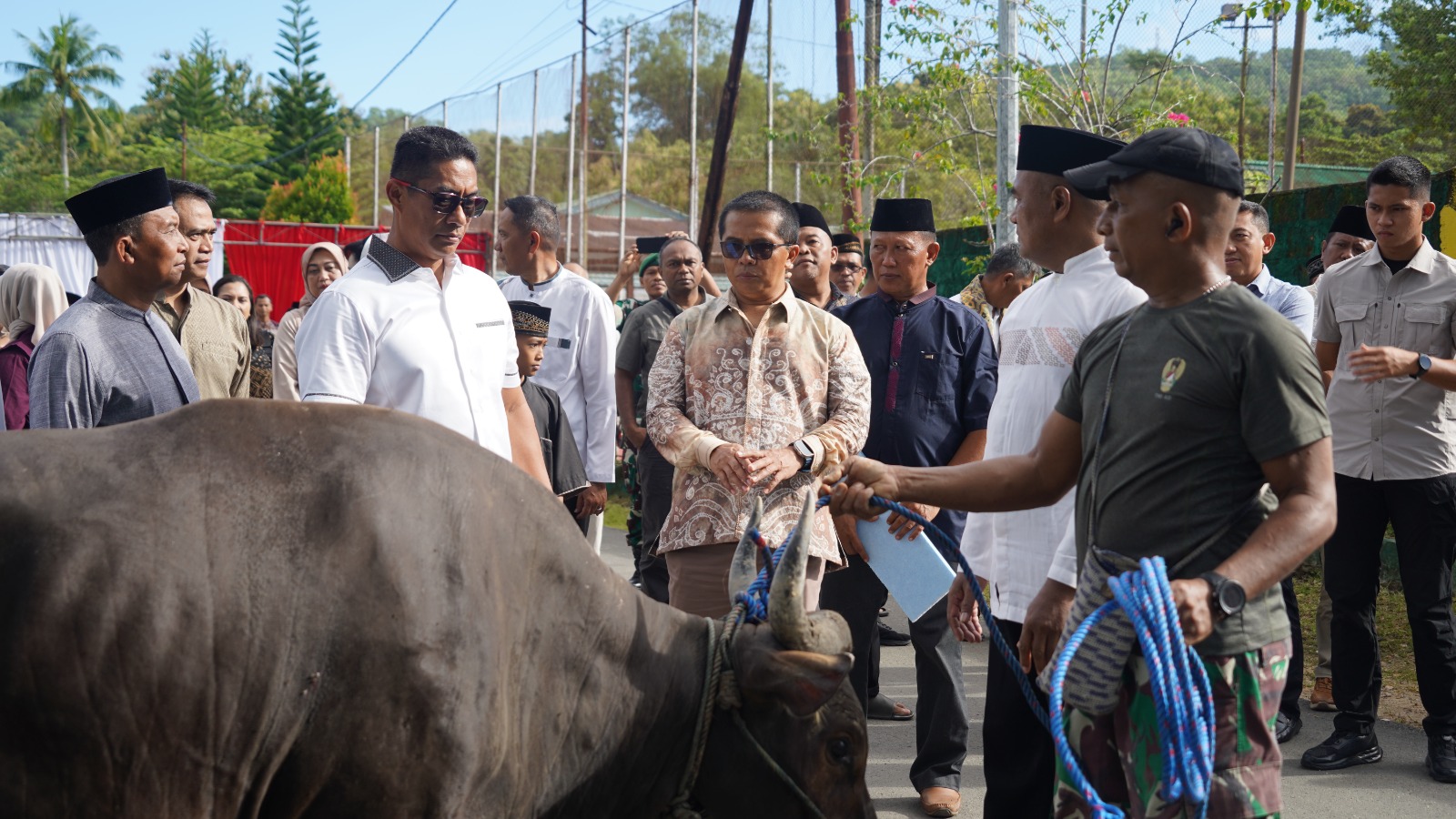 Dalam kegiatan tersebut, Pangdam didampingi oleh Ketua Persit Kartika Chandra Kirana Daerah XVIII/Kasuari, Ny. Alin Jimmy Ramoz. Penyerahan hewan qurban ini menjadi bagian dari rangkaian kegiatan dalam menyambut Hari Raya Idul Adha 1446 H serta sebagai bentuk kepedulian sosial TNI terhadap umat Muslim di lingkungan satuan.