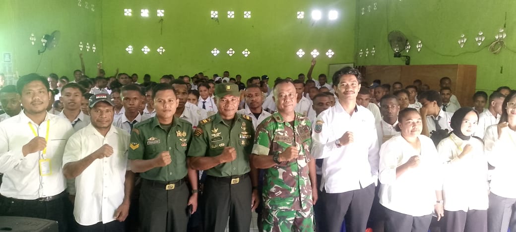 Perwira Seksi Operasi (Pasi Ops) Kodim 1807/Sorsel Berikan Materi Wawasan Kebangsaan Kepada Siswa SMK Yapis Teminabuan.