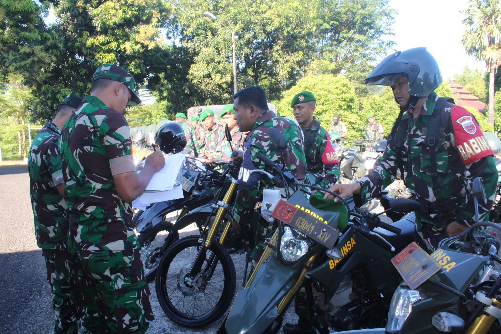 KODIM 1405/PAREPARE – Dalam rangka memastikan kesiapan operasional kendaraan dinas, Mayor Czi Benny Gunawan selaku Pasilog Korem 141/Tp memimpin langsung kegiatan pemeriksaan material kendaraan dinas (randis) roda 4 dan roda 2 milik Koramil 1405-01/Ujung dan Koramil 1405-02/Soreang. Kegiatan tersebut dilaksanakan di Makodim 1405/Parepare, Jl. Jend. A. Yani Km-4, Kelurahan Lapadde, Kecamatan Ujung, Kota Parepare.