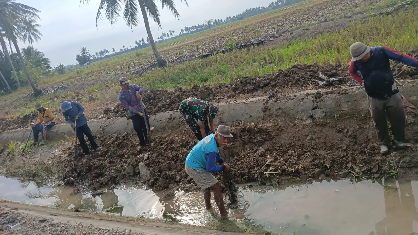Pinrang_ Sebagai wujud kepedulian terhadap kebersihan dan kelancaran sarana pertanian, Babinsa Koramil 1404-06/Duampanua Kodim 1404/Pinrang Koptu Mirdin Pratama, melaksanakan kegiatan kerja bakti bersama warga di Desa Salipolo, Kecamatan Cempa, Kabupaten Pinrang, Rabu (21/01/2026).