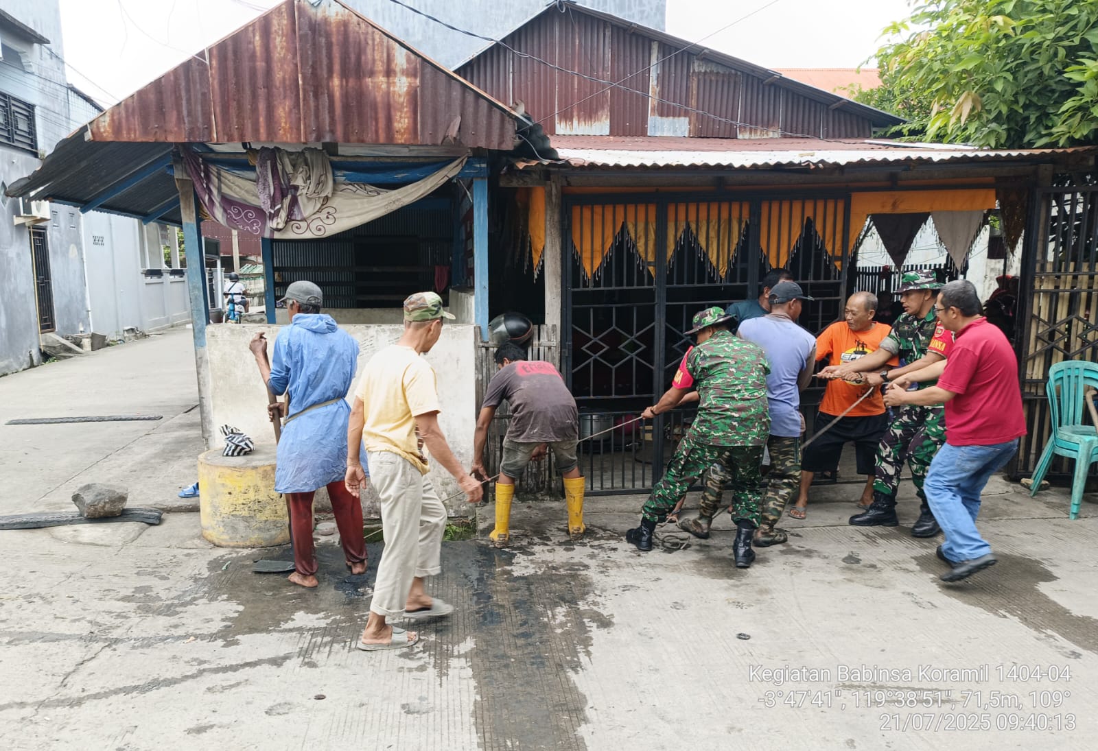 Pinrang_ Upaya meningkatkan kebersihan Lingkungan, Koramil-04/Paleteang Kodim 1404/Pinrang bersama warga melaksanakan kerja bakti pembersihan saluran air di Lingkungan Jaya Barat Kelurahan Jaya Kecamatan Watang Sawitto Kabupaten Pinrang, Senin (21/07/2025).