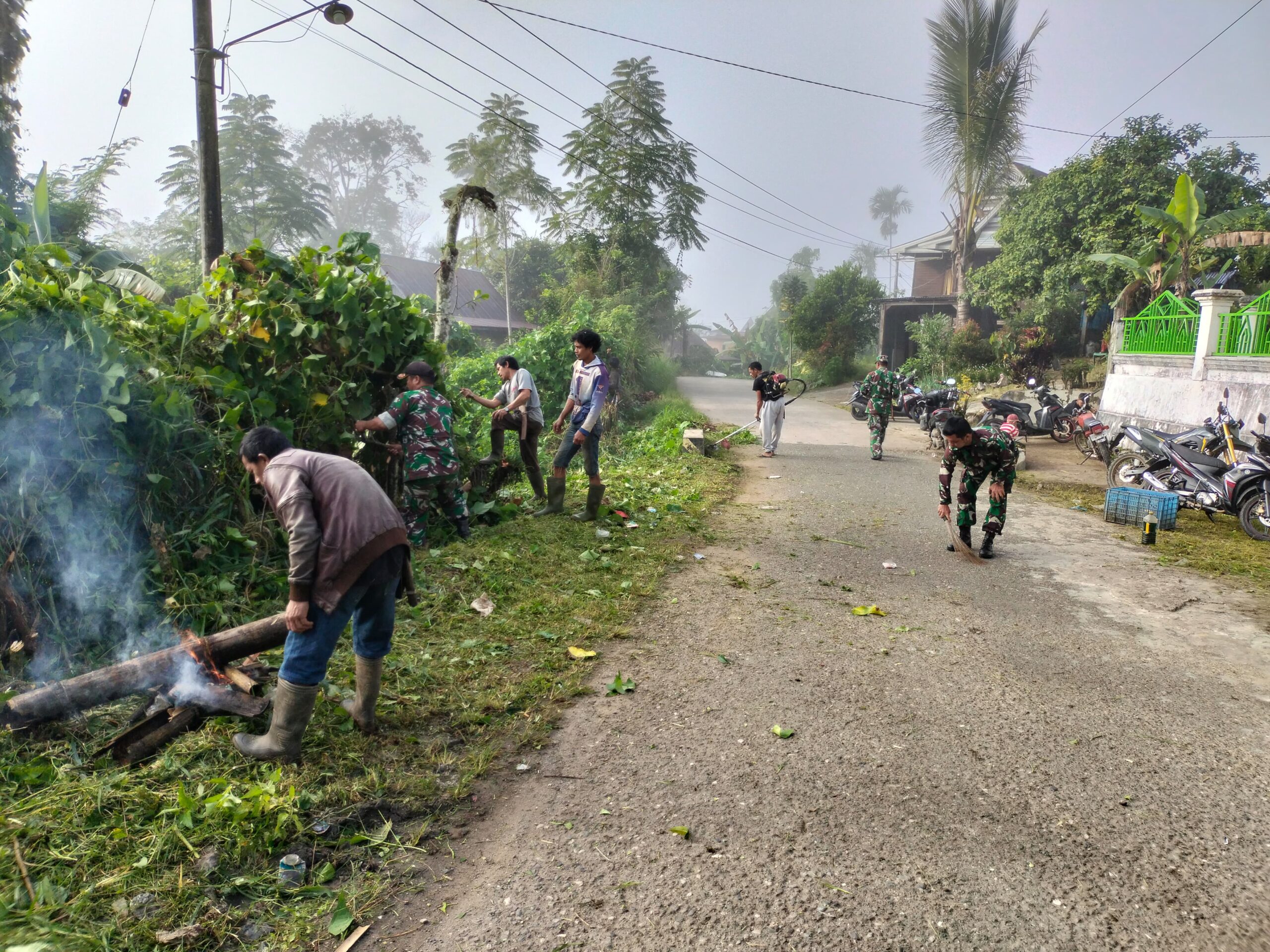 Pada kesempatan tersebut Pelda Yudin Djoni melaksanakan gotong-royong bersama masyarakat membersihkan sampah dan rumput liar di pinggir badan jalan di wilayah binaan tersebut, kondisi tersebut mendorong Babinsa mengajak masyarakat untuk bergotong royong guna melaksanakan pembersihan rumput dan sampah sehingga nantinya membuat kondisi jalan menjadi kelihatan bersih dan terpelihara.