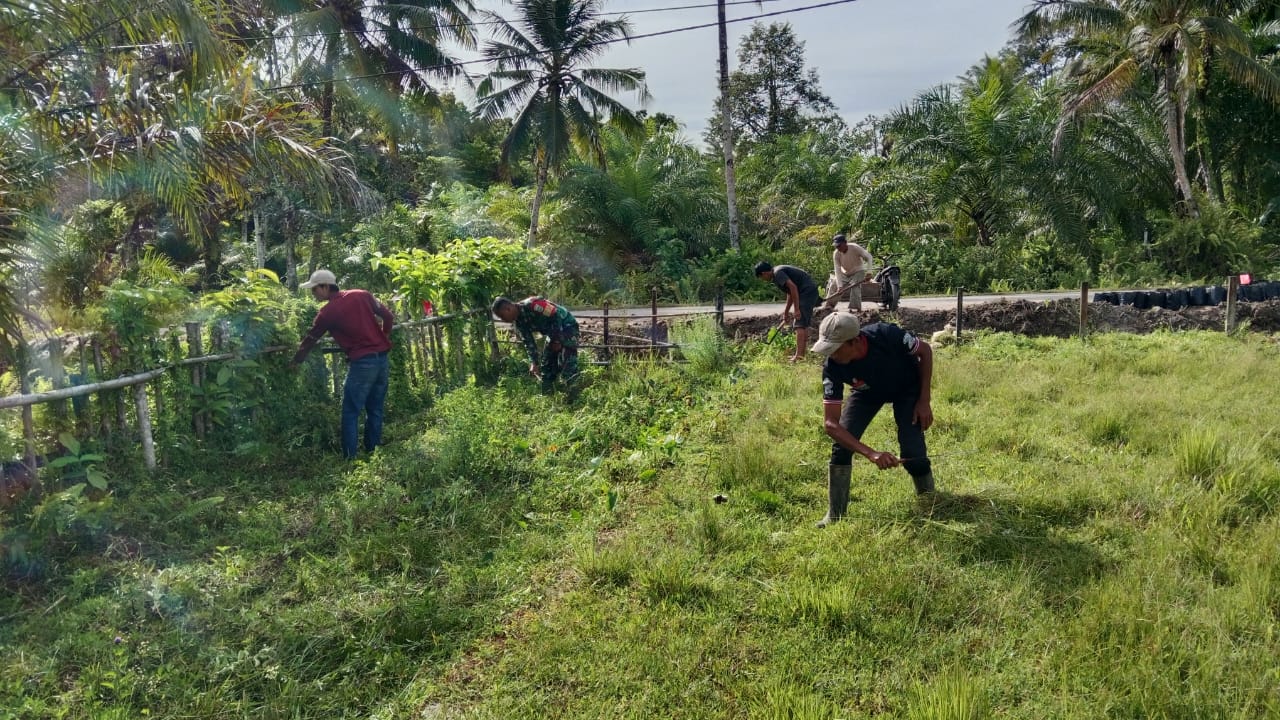 Simeulue – Serda Yatno Babinsa Koramil 06/Teluk Dalam melaksanakan gotong royong bersama pemuda didesa binaan membersihkan rumput di lapangan bola sekaligus perbaikan pagar yang sudah rapuh dan rusak, bertempat di Dusun Mutiara Desa Bulu Hadek Kec. Teluk Dalam Kabupaten Simeulue. Sabtu (31/05/2025).