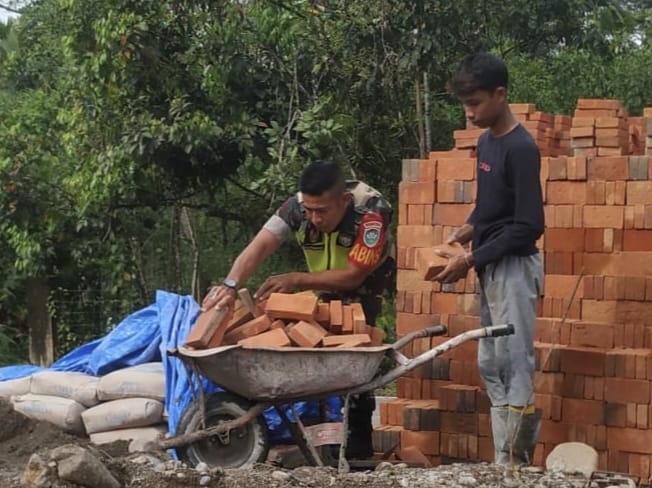 Aksi ini bukan sekadar formalitas. Dengan mengenakan pakaian dinas lapangan, Babinsa Sertu Marwan ikut mengangkut semen, pasir dan batu bata bersama para pekerja. “Ini adalah bagian dari tugas kami sebagai aparat teritorial. Kehadiran kami di tengah masyarakat harus bisa memberi manfaat langsung,” ujar Sertu Marwan saat ditemui di lokasi.