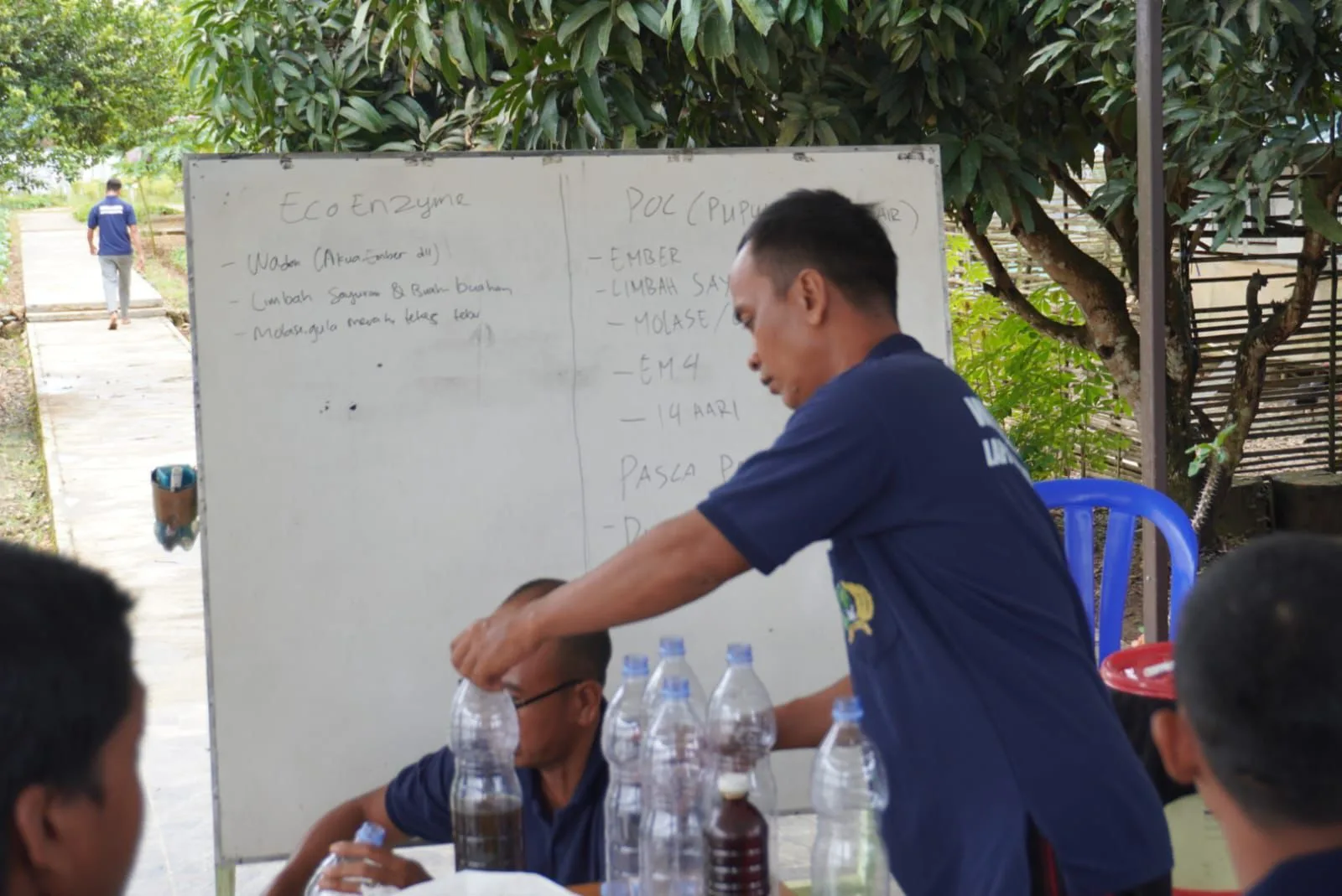Dalam penyampaian materi Eco Enzyme, narasumber memaparkan tahapan pembuatan dimulai dari menyiapkan botol, limbah buah segar, molase atau gula merah, serta air dengan perbandingan 1:3:10, kemudian difermentasi selama tiga bulan dan tutup botol dibuka secara berkala untuk mengeluarkan gas. Sementara itu, untuk POC, peserta diarahkan menyiapkan ember tumpuk, limbah buah atau sayur, molase, Effective Microorganisms 4 (EM4), dan air, lalu membuat larutan dekomposer sebelum difermentasi selama 14 hari hingga siap digunakan.