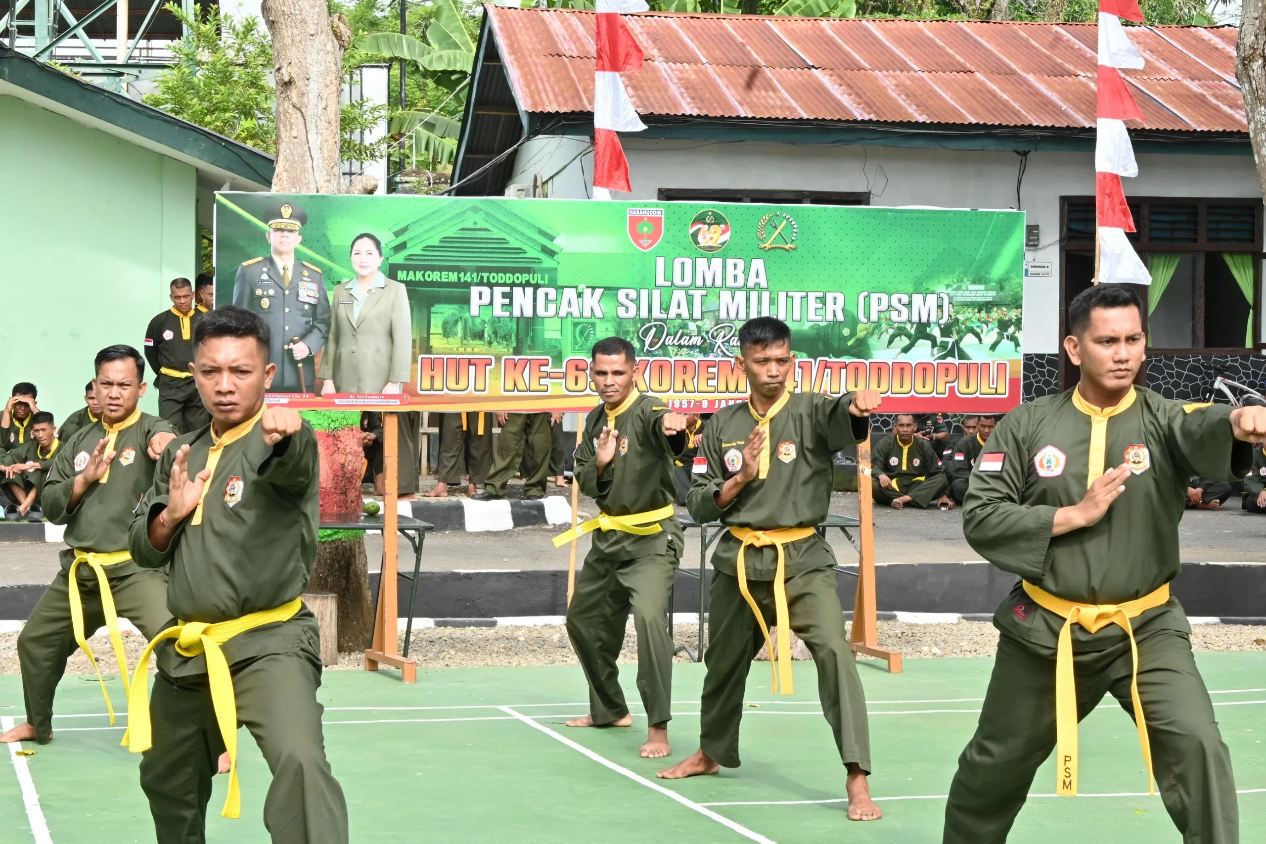 Dalam rangka memperingati HUT Korem 141/Toddopuli ke-69 tahun 2026, Korem 141/Tp menggelar Lomba Pencak Silat Militer (PSM) yang diikuti Kodim jajaran dan Balak Korem 141/Tp. Kegiatan berlangsung di Lapangan Pickleball Makorem 141/Tp, Jalan Jenderal Sudirman, Kelurahan Manurungnge, Kecamatan Tanete Riattang, Kabupaten Bone, Kamis (8/1/2026).