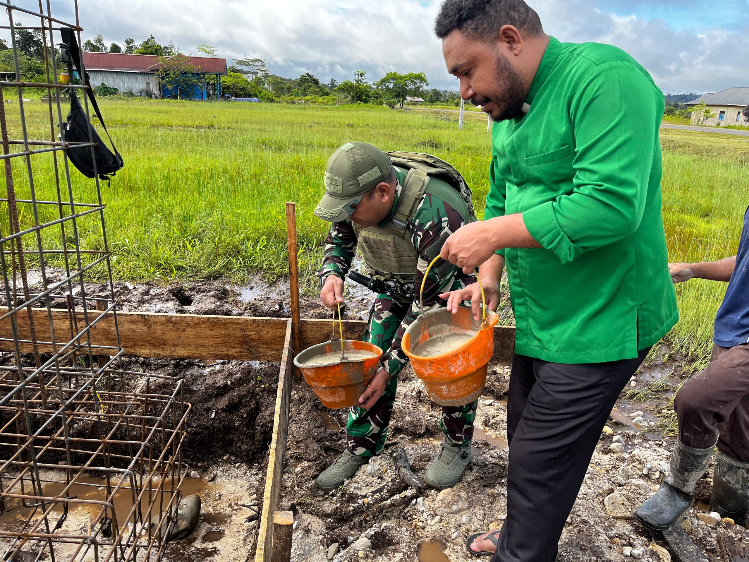 Kegiatan ini menjadi simbol awal kebersamaan antara prajurit TNI dan masyarakat dalam mendukung pembangunan sarana rohani.