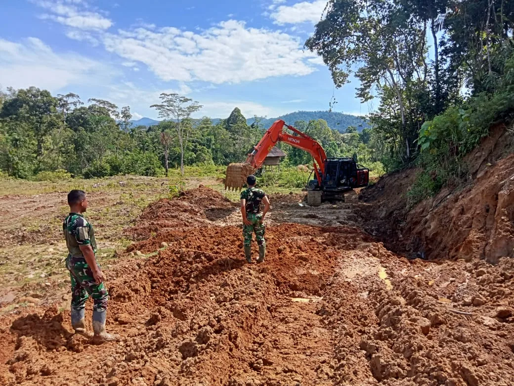 Nagan Raya, Program TNI Manunggal Membangun Desa (TMMD) Ke-127 Kodim 0116/Nagan Raya mulai memberikan harapan baru bagi masyarakat Desa Ujong Blang dan Desa Pante Ara. Pengerjaan pembukaan jalan yang menghubungkan kedua desa tersebut kini terus dikebut menggunakan alat berat excavator, Jumat (13/2/2026).