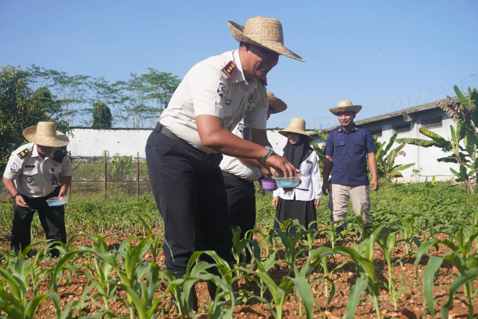 Pemberian Pupuk Jagung Manis Perkuat Ketahanan Pangan di Lapas Banjarbaru