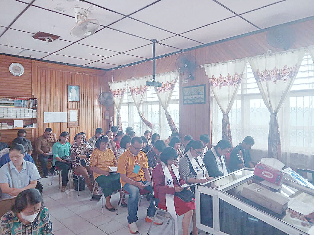 kegiatan ibadah ini dipimpin ini oleh Pdt. Marlina Mohimpi. S.Th dari Gereja Kristen Sulawesi Tengah (GKST) Jemaat Effatha Palu dengan tema ibadah “Pertobatan dan Pengampunan” dalam bacaan Matius 6 :11-12 kegiatan ibadah ini turut diawasi oleh anggota pengamanan yang bertugas.
