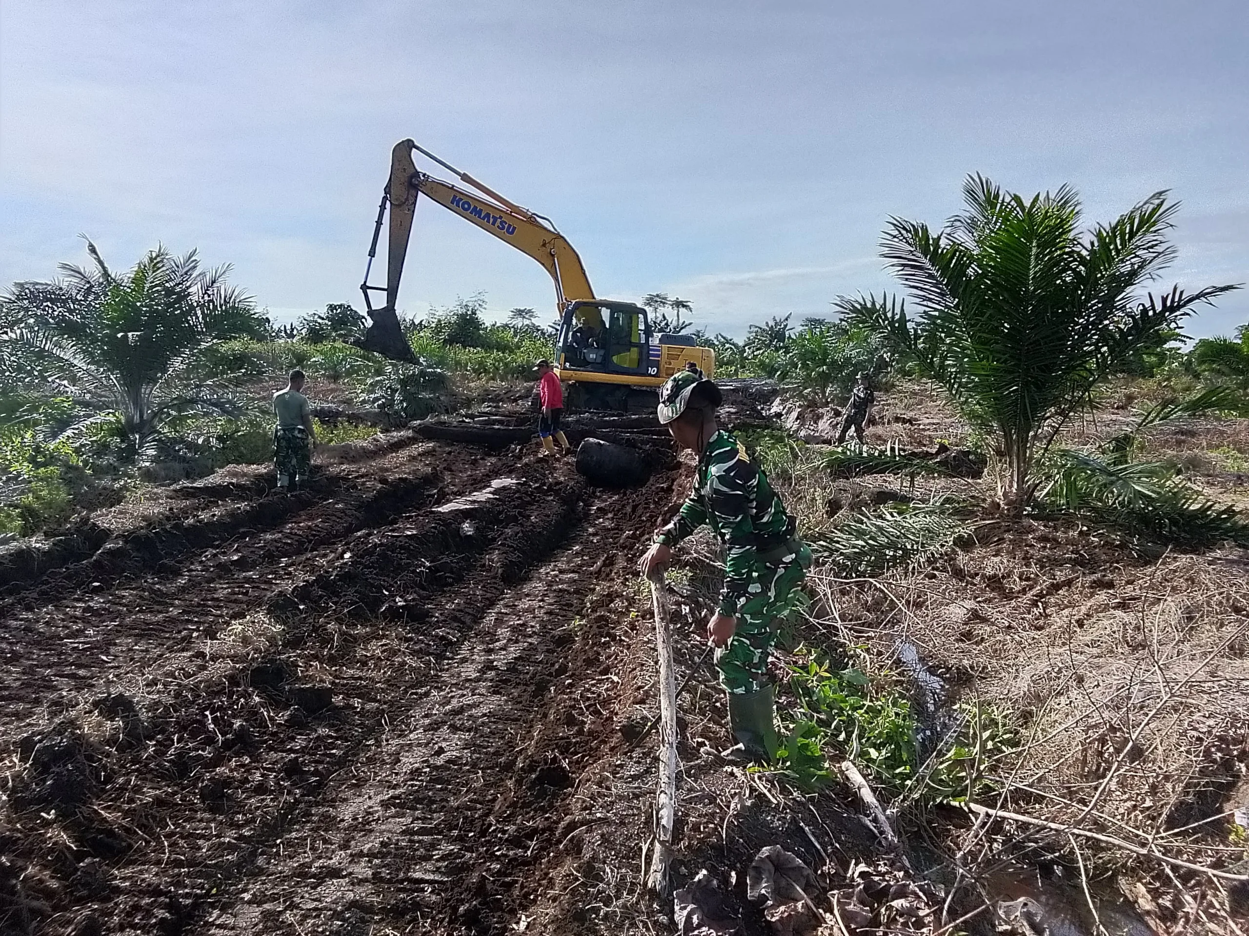 Meski menghadapi kondisi medan yang cukup menantang, semangat personel di lapangan tidak surut. Proses pengerjaan terus dipacu dengan memanfaatkan alat berat untuk mempercepat pembukaan dan perataan badan jalan. Kehadiran alat berat sangat membantu mengingat kontur tanah yang cukup keras dan tidak merata.